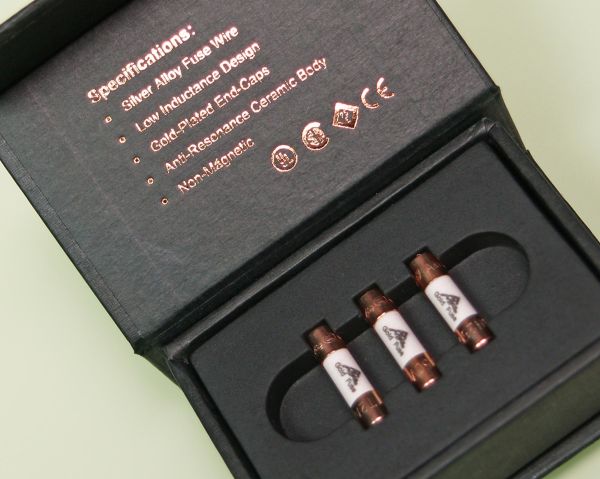 AMR Gold Fuse — tai aukštos kokybės saugikliai, skirti pakeisti standartinius saugiklius audio ir video įrenginiuose. Keraminis korpusas, auksu padengti vario kontaktai bei sidabro viela viduje.