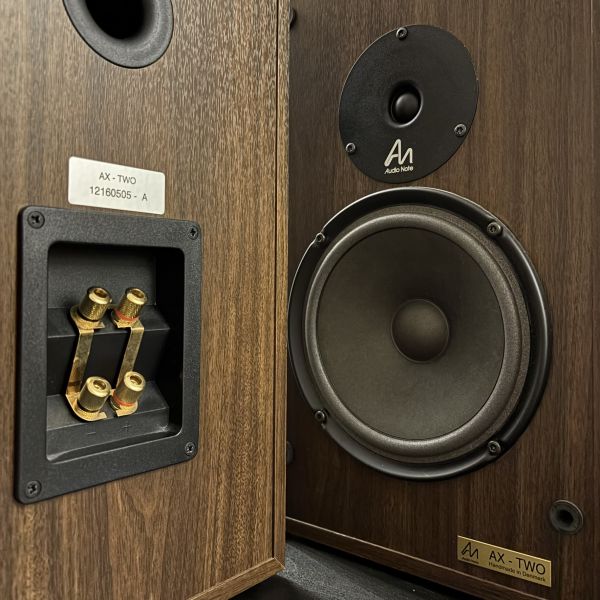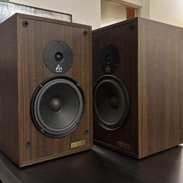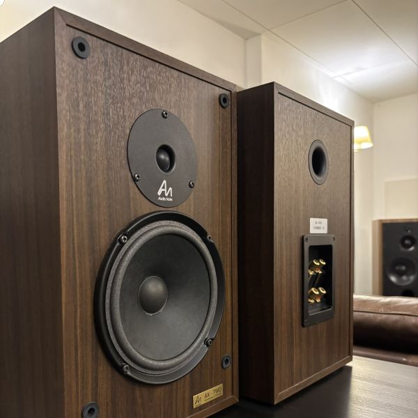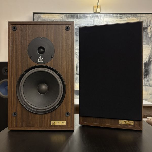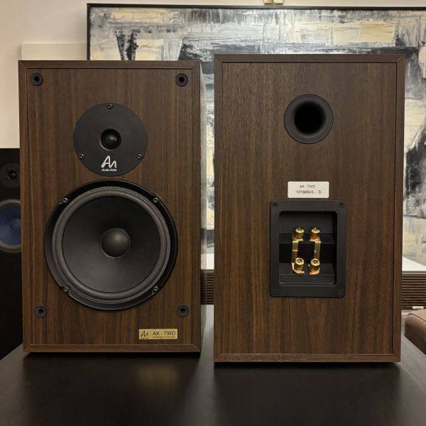 Naudotos, idealios kosmetinės ir techninės būklės Audio Note AX-TWO lentyninės kolonėlės. Apdaila - riešutas.
