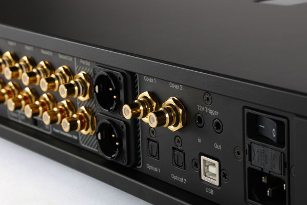 - Įėjimai: 1 x balansiniai (XLR), 4 x analoginiai (RCA), 1 x Record In (RCA), 2 x optiniai (TOSLINK), 2 x koaksialiniai (COAX), 1 x USB (B)